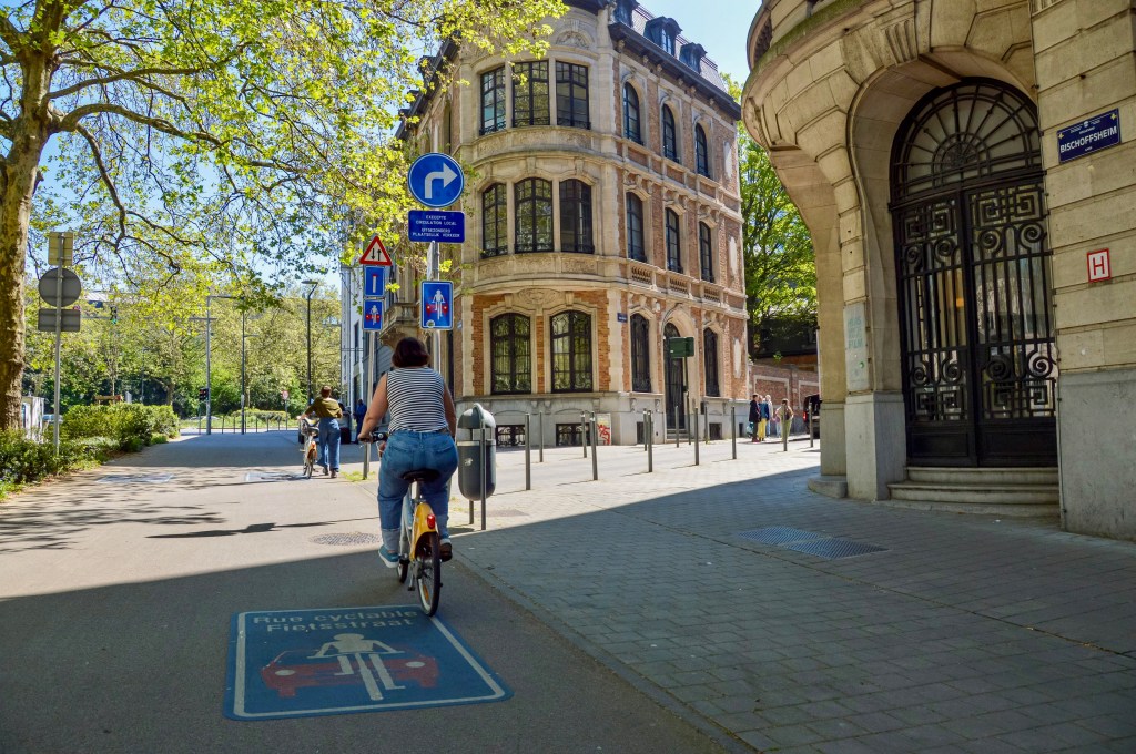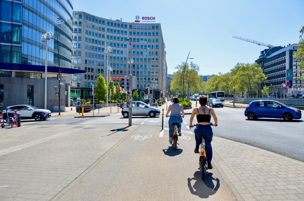 As part of the Good Move policy, on January 1, 2021, a city-wide 30-km per hour speed limit was implemented, and with it, the expansion of Brussels’ cycling network. This includes an increasing number of fietsstraeten (cycle streets) throughout the city, as well as a rapid implementation of 40-kilometres of pop-up cycle lanes, many of which have now become permanent. On each visit to the city we discover another new, fully separated cycling route, like along Rue des Arts (conveniently home to the European Cyclists’ Federation), which connects to the EuroVelo Route 5 if you happen to be doing a bit of a cycle tour.